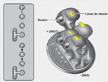 HAUT (+) : Poussez le levier une fois vers l'avant pour passer au rapport supérieur suivant.