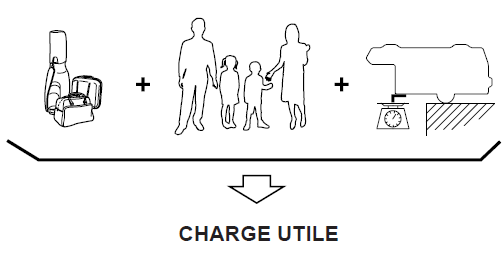 y compris le poids en état de marche du véhicule et toute la charge utile.