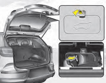 Votre véhicule est équipé d'un dispositif d'ouverture d'urgence, situé dans le bas du hayon. Si quelqu'un est enfermé par inadvertance dans l'aire à bagages, le hayon peut être ouvert en poussant le levier de dégagement et poussant le panneau du hayon.